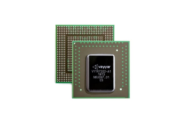 The transceivers are built into the chip itself and connected to the 72 antennas mounted on the printed circuit board. Vayyar uses half-wave, omnidirectional antennas, which give a wide field of view. High frequencies are picked up by antennas as small as 2 mm, while 20 mm antennas are tuned to the low frequencies.