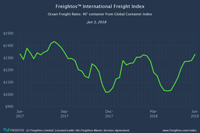 On June 1st, the EBS had an immediate impact on the China-Europe (7.8% week on week jump). The EBS will come into effect for lanes into the US on July 1st.